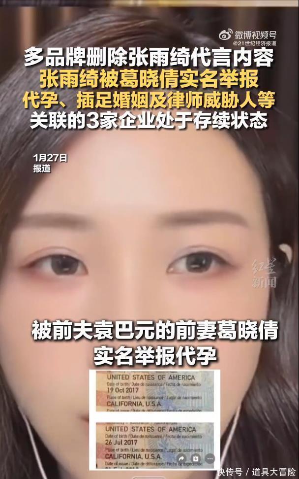 这场风波的起点,是张雨绮前夫袁巴元的前妻葛晓倩掷出的“重锤”。不仅实名举报张雨绮存在代孕、插足他人婚姻等行为,更指控其律师威胁家属。其中,最引发外界质疑的是一份经公证的子女护照信息,显示双胞胎出生日期相隔仅85天,远短于自然妊娠周期,让“代孕”疑云重重。此外,葛晓倩还拿出了2016年的监控画面与登机牌,指认张雨绮在其婚姻存续期间就已携行李入住婚房。面对连环指控,张雨绮方面至今保持沉默,仅前经纪人杨天真曾晒出旧孕照辟谣,但未能解释关键的时间矛盾,也未公开出生证明等直接证据。