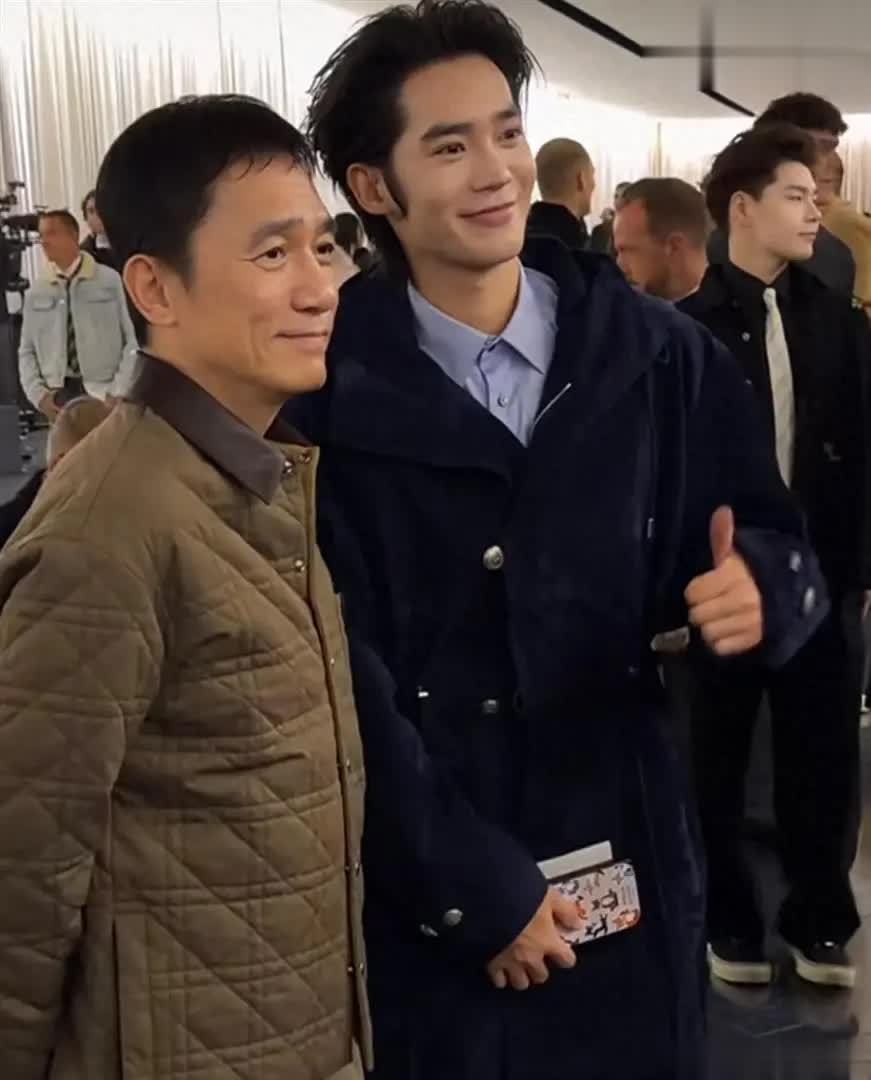 镜头前,首次执起主持话筒的于适,身着一袭未发布的藏蓝色麂皮束腰风衣,完成了全球首穿,被赞“王子范十足”。然而,这份从容在直面梁朝伟时,化为了略显紧张的标志性甜笑,粉丝直呼“可爱晕了”。他的任务,是引导这位惜字如金的影帝分享观秀感受。梁朝伟的回应果然经典而浓缩:谈及时装周初体验,他评价为“感受多元的文化”;被问及秀场中适合他的造型,他只对一件皮质燕尾服给出了“独特”二字的评语。整个过程中,于适努力接话引导,梁朝伟则保持着一贯的内敛与温和,空气里弥漫着一种安静又略带喜剧感的张力。
