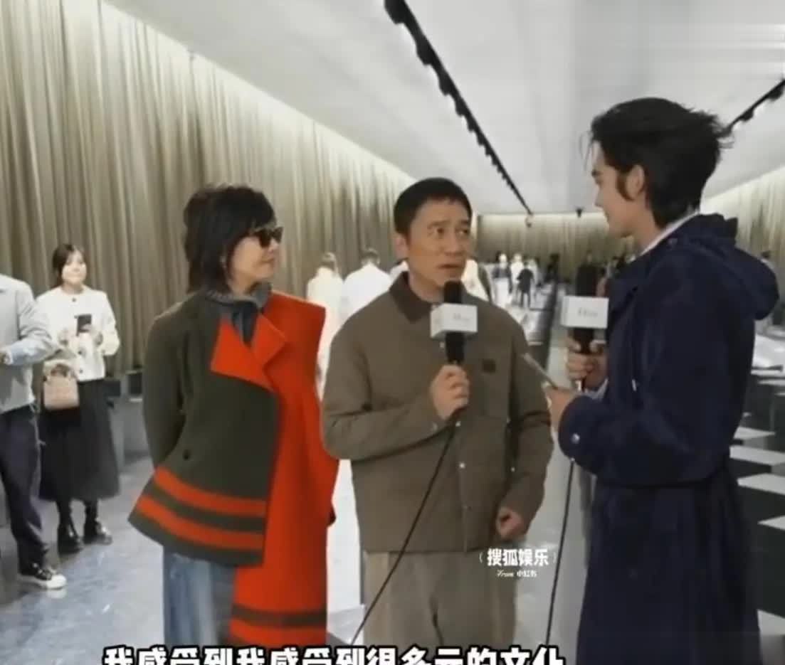 正是这经典一幕,让一旁的刘嘉玲忍俊不禁,笑着对主持人于适发出那句著名的感叹:“好难为你啊!”一语道破天机,也成了整场互动中最出圈的金句。这句调侃不仅是对丈夫“社恐”属性的精准吐槽,也巧妙化解了采访的短暂沉默,彰显了她的高情商与幽默感。